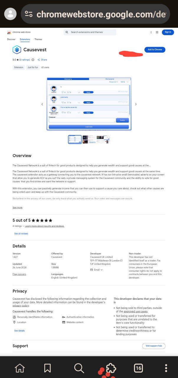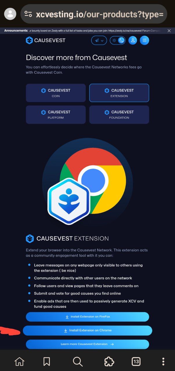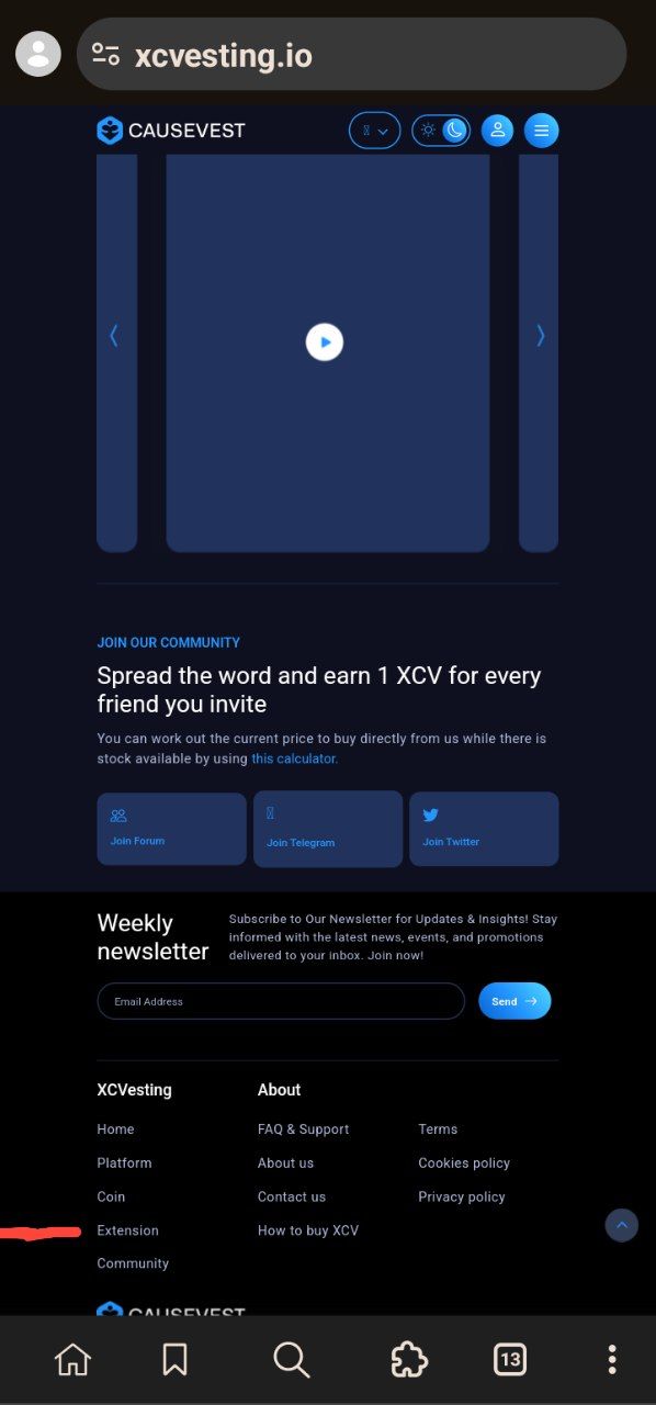 Firstly open your misses browser application on your android phone and search the Causevest website; xcvesting.io.