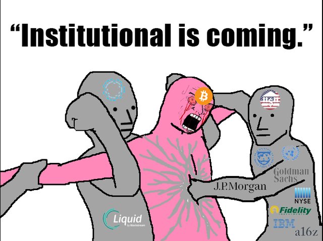 Of course not. This is the bullshit being sold to you. Your newfound ‘allies’ in traditional finance (TradFi) are nothing of the sort. Not only do they not care about crypto, they are actively hostile to everything crypto represents. They despise privacy and are eager to KYC the world. They are middlemen incarnate. They want to reduce your peer-to-peer distributed software network to a custodial ticker they can dump on your retirement account. They like to appear “anti-regulation” but in fact they love regulation - as long as it hurts their competitors more than them.